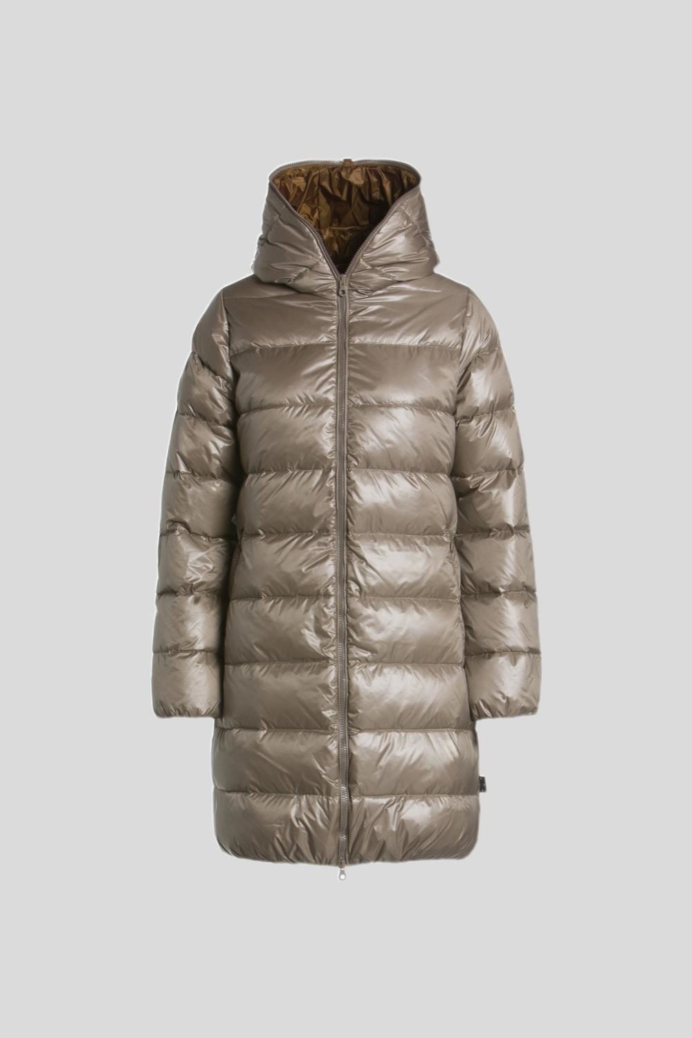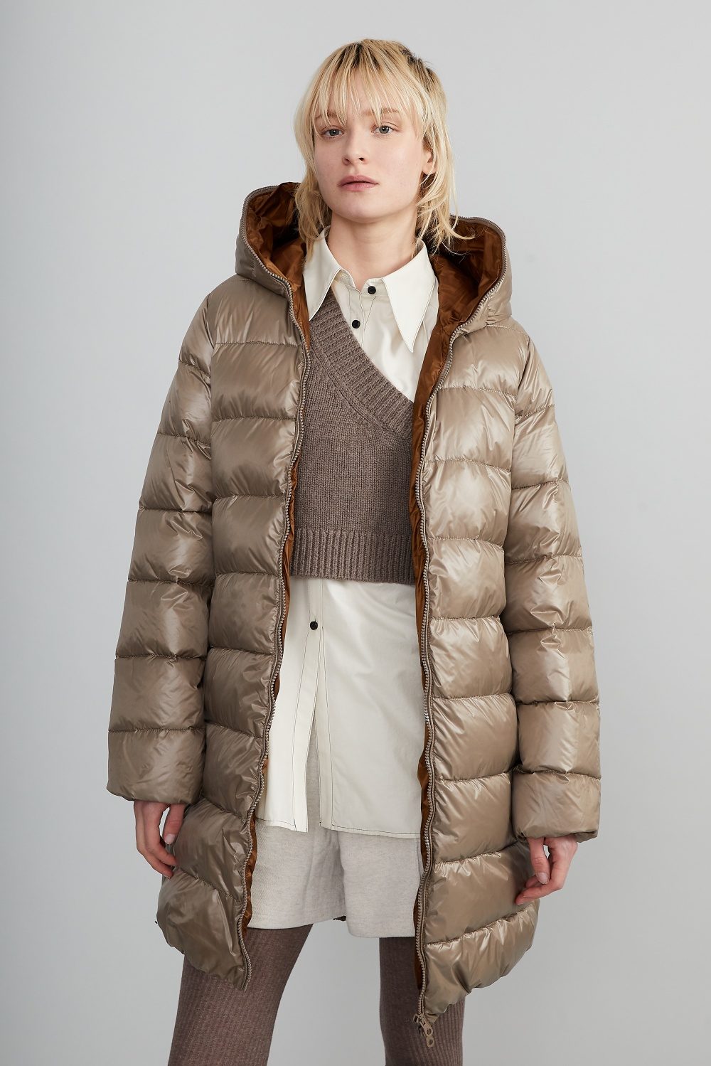 DUVETICAのブランドアイコンでもあるフードトップまで続くダブルファスナーのフルジップデザイン。