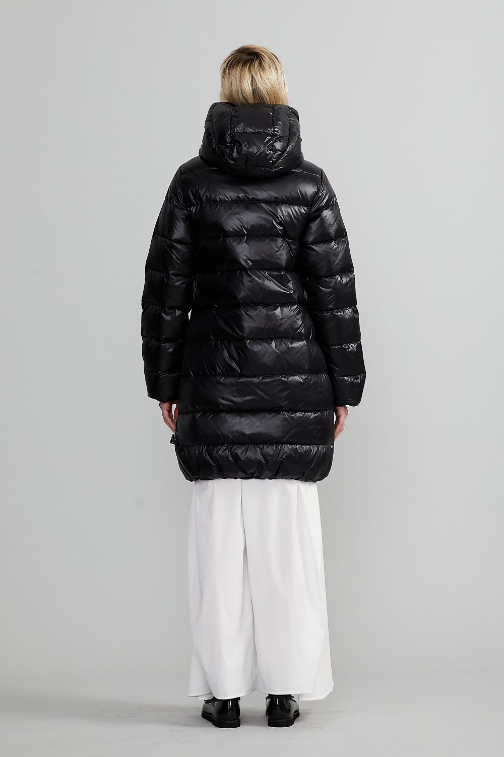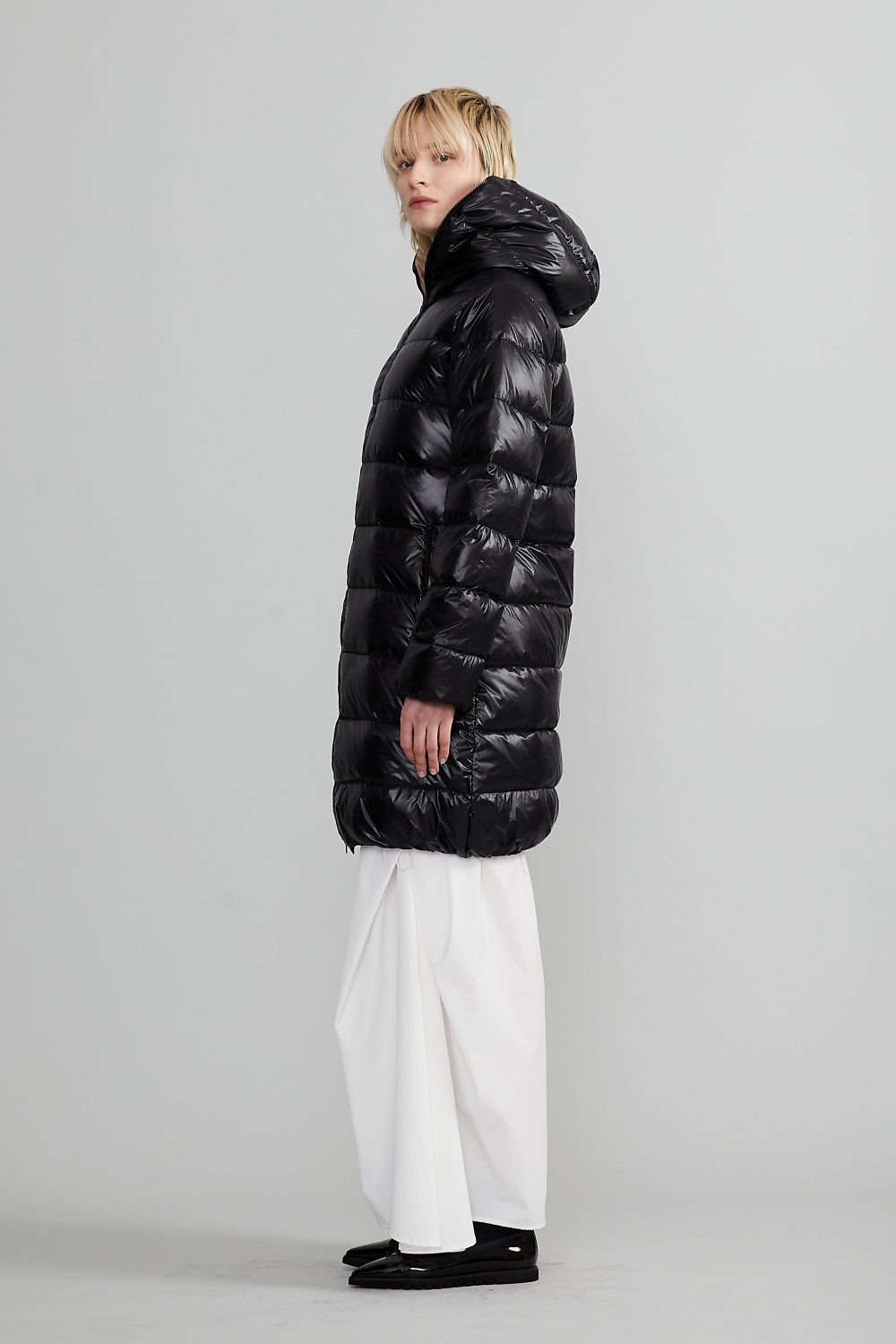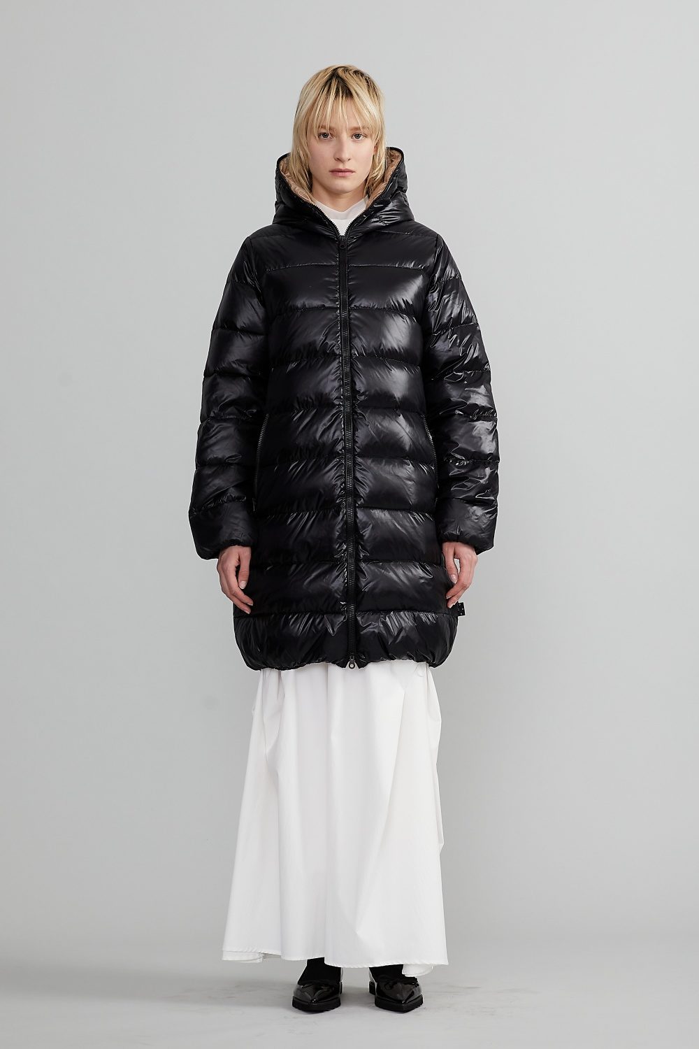 軽さ・防寒性・エレガンスを兼ね備えたミドルレングスダウンコート「ACERIONEQUATTRO(アチェリオネクアトロ)」。ひざ上まで包み込む絶妙な丈感と、しなやかな曲線の立体シルエットが、品格ある冬の装いを演出。