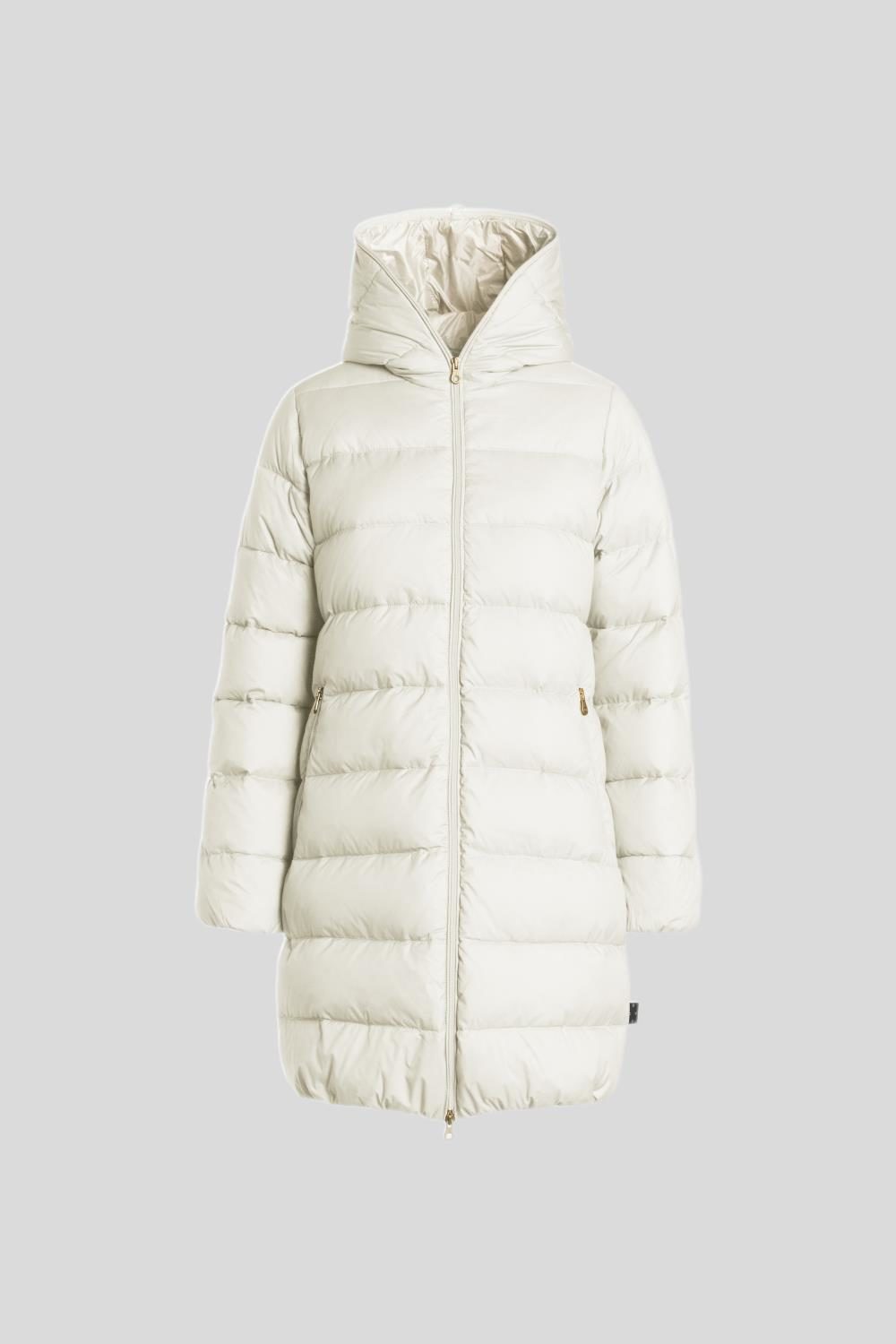 DUVETICAのブランドアイコンでもあるフードトップまで続くダブルファスナーのフルジップデザイン。
