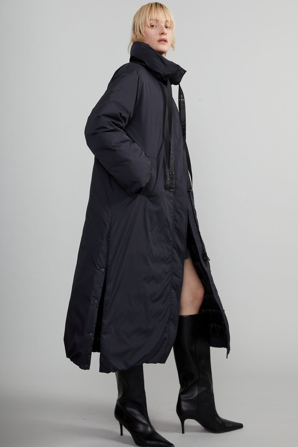 俳優・安達祐実さんとのコラボレーションによるロングダウンコート「ALAQUA(アラクア)」。2024年秋冬に登場し、反響を受けて2025年秋冬も継続展開。シルエットや細部にまで安達さんの美意識が息づき、上品さと実用性を兼ね備えた一着に仕上がっています。