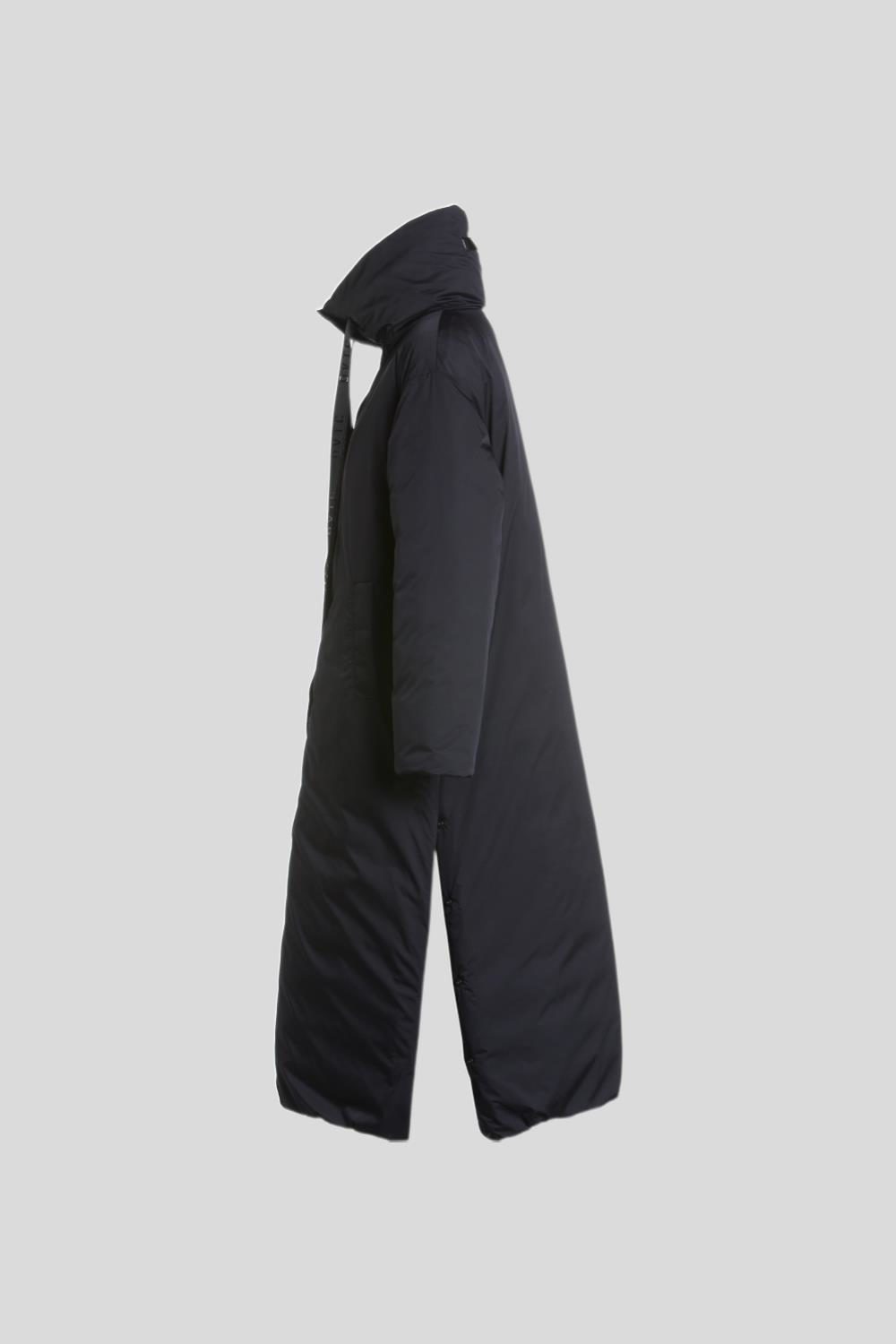 スナップボタン仕様のサイドスリットによりシルエット変化も可能に。
