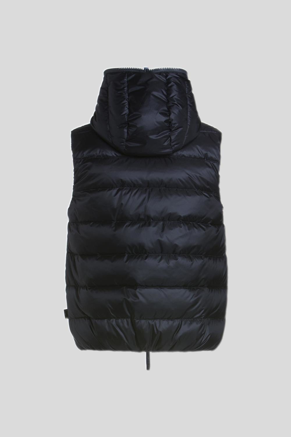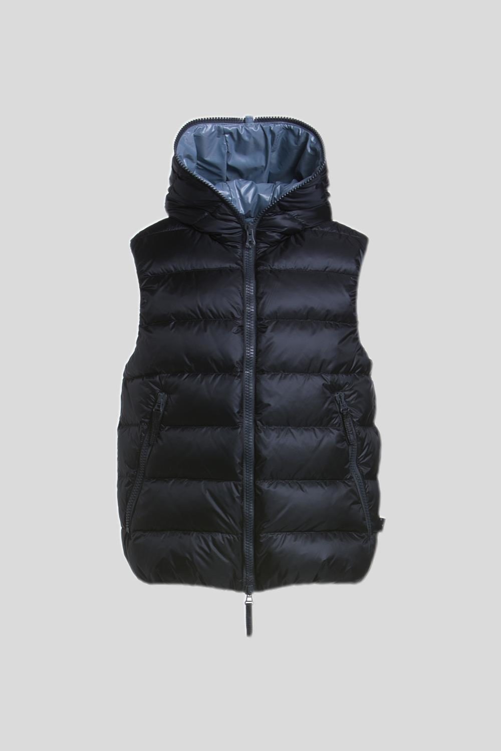フードトップまで続くダブルファスナー仕様のフルジップアップデザインは、DUVETICAを象徴するブランドアイコンのひとつです。