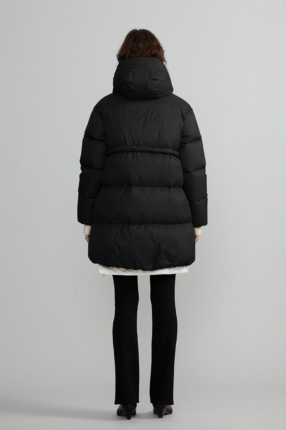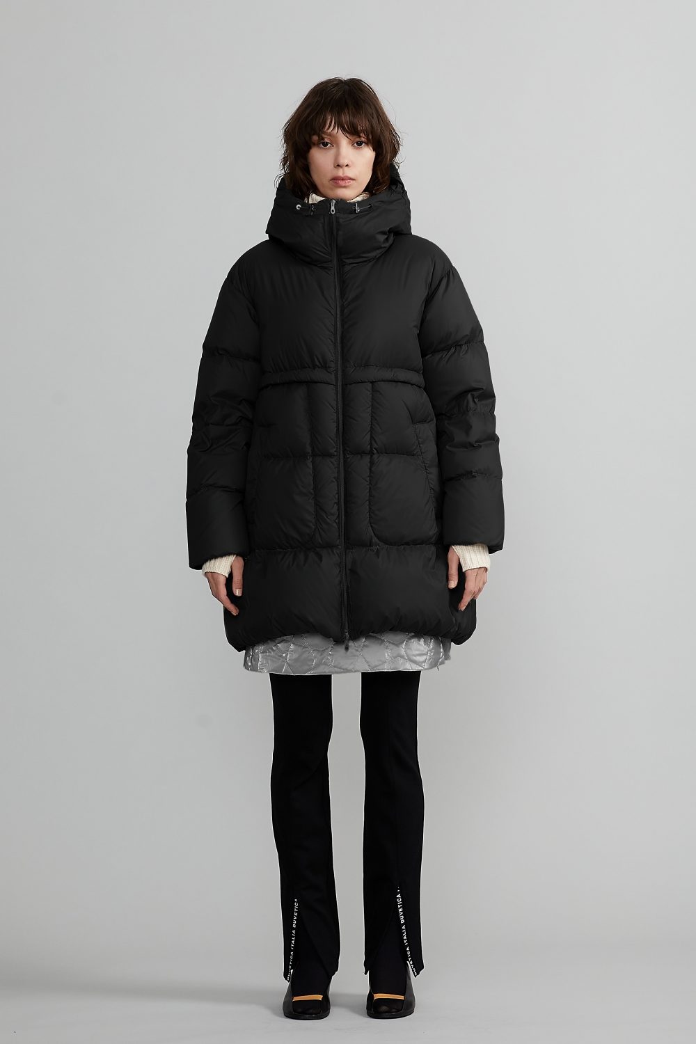 モダンで洗練されたミドル丈ダウンコート「AWANATA(アワナタ)」。ユニークなパネル切り替えと大胆なステッチワークを組み合わせ、リラックス感とスタイル性を両立。ゆとりあるボリュームが空気を含んでしっかりと保温しながら、軽やかさと快適さを兼ね備えた仕上がりです。