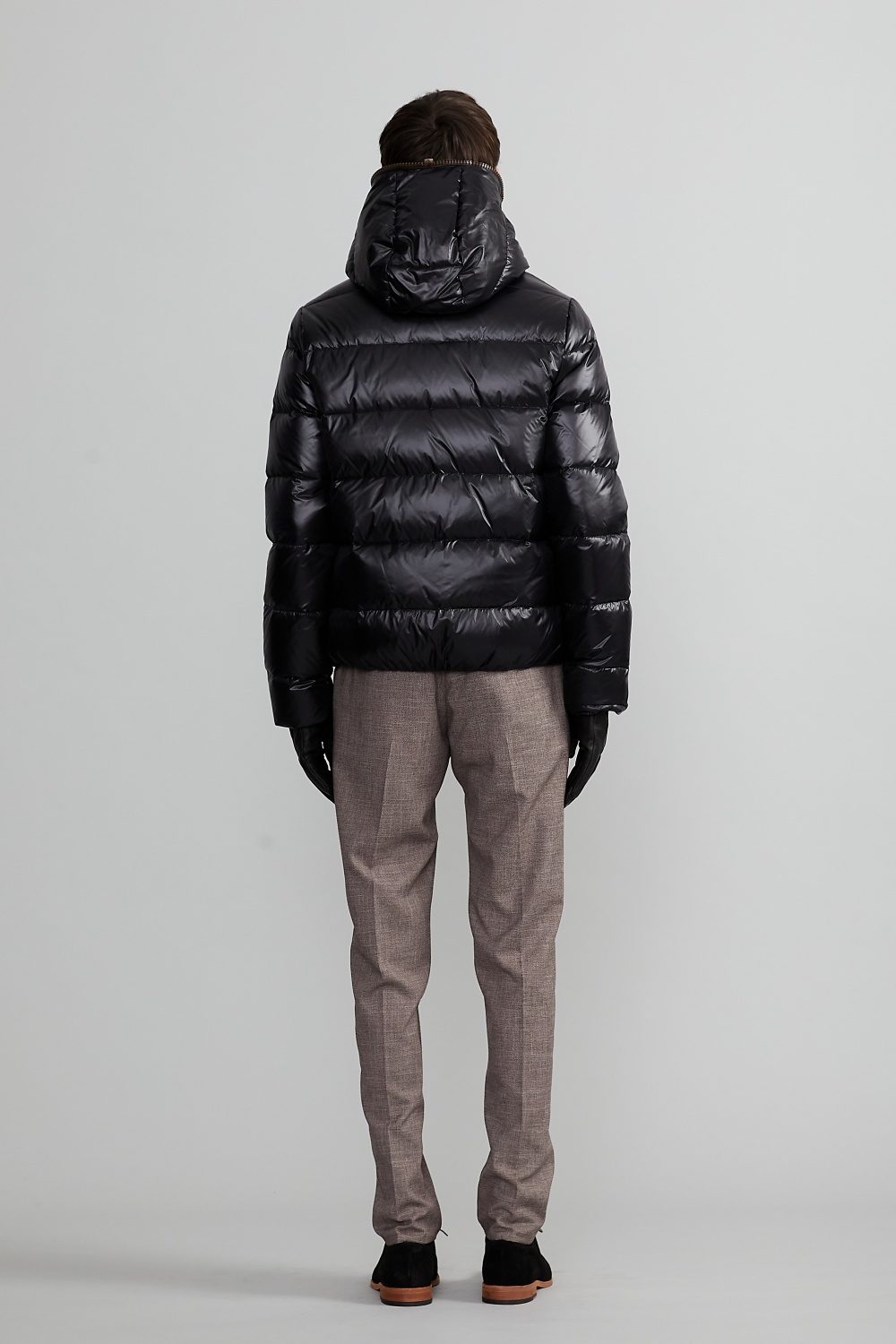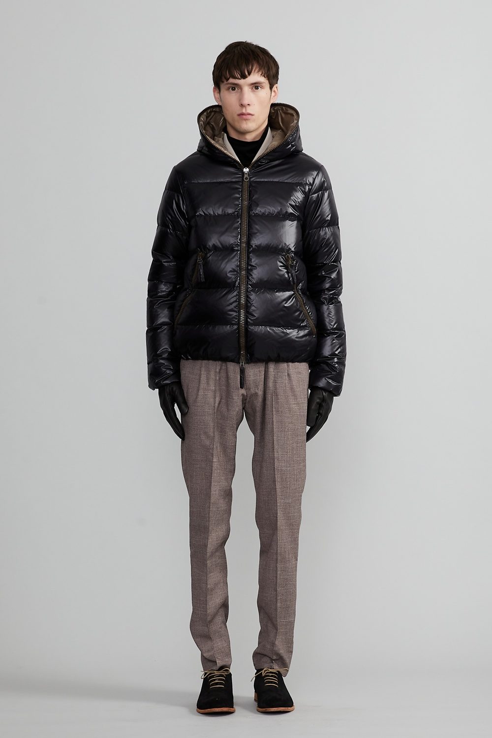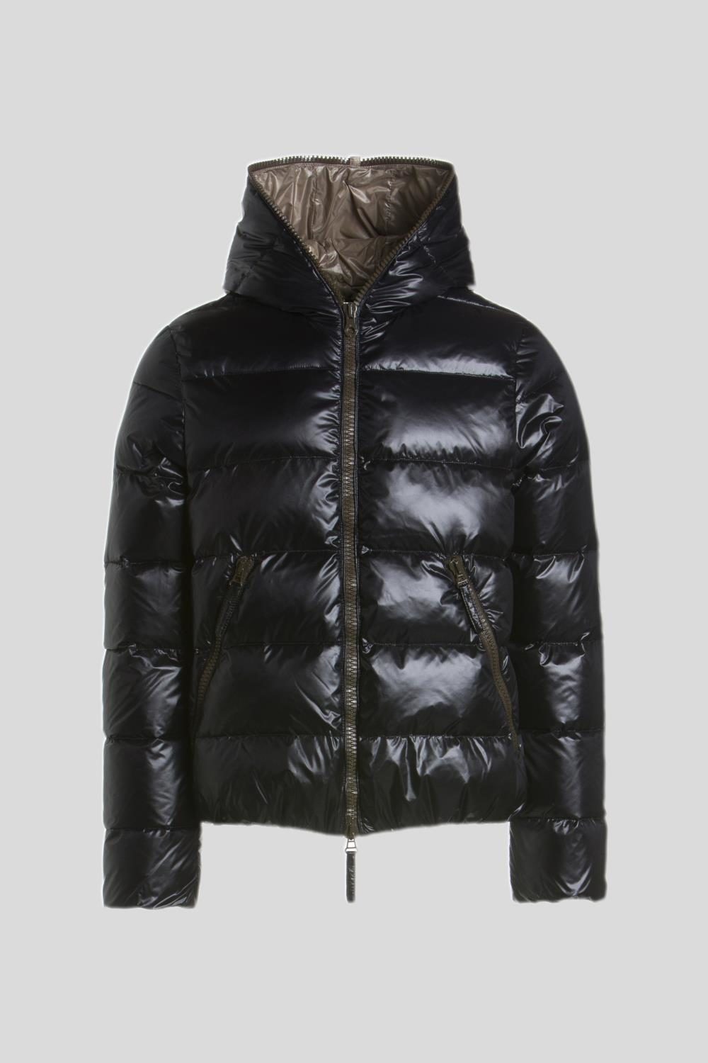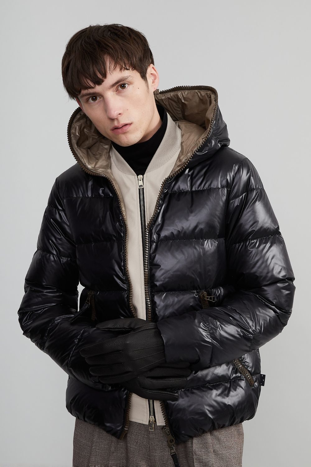 「DIONISIO(ディオニシオ)」の系譜を受け継ぐ、フードトップまで続くダブルファスナー仕様のフルジップアップデザインは、DUVETICAを象徴するブランドアイコンのひとつです。