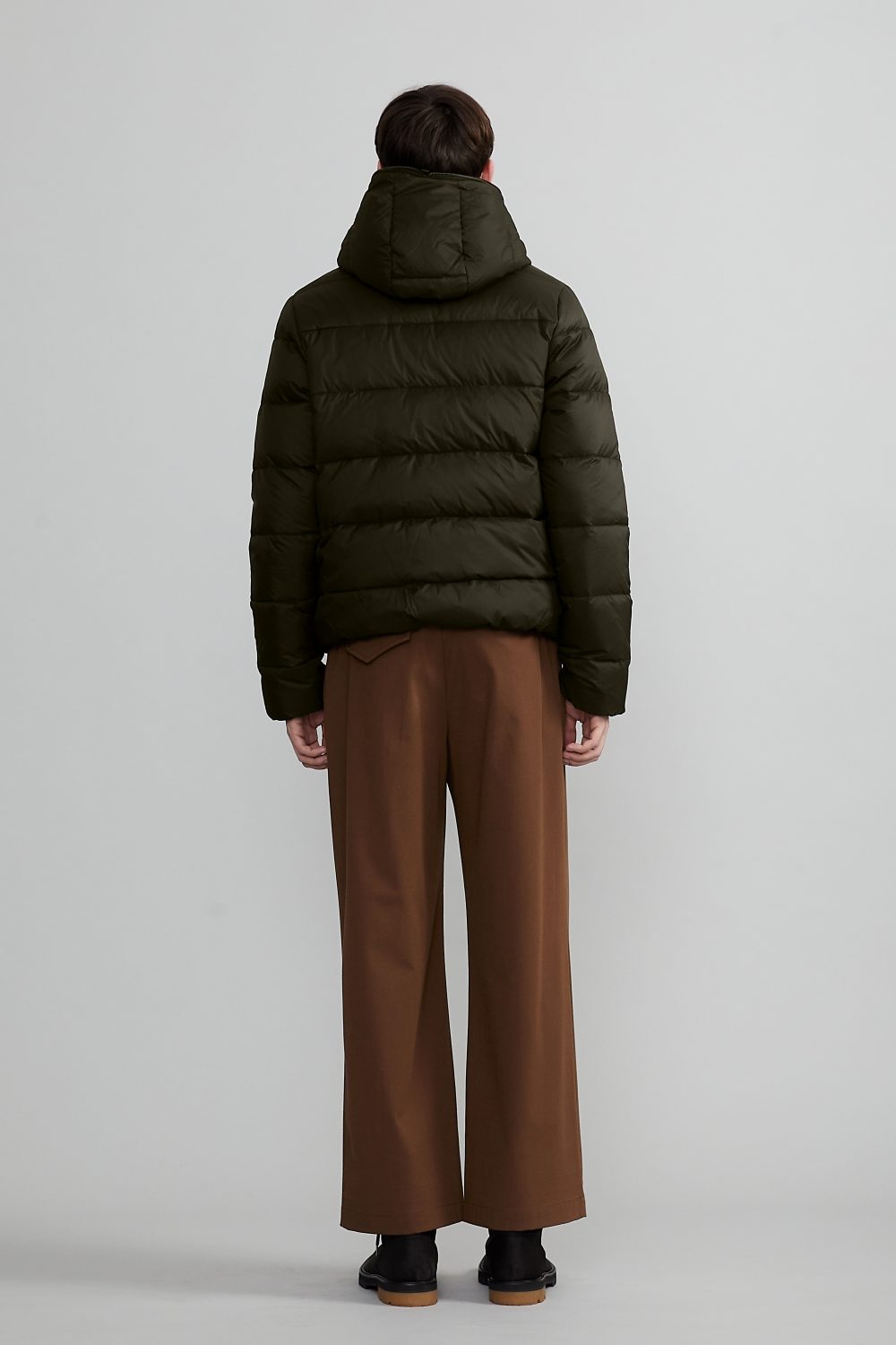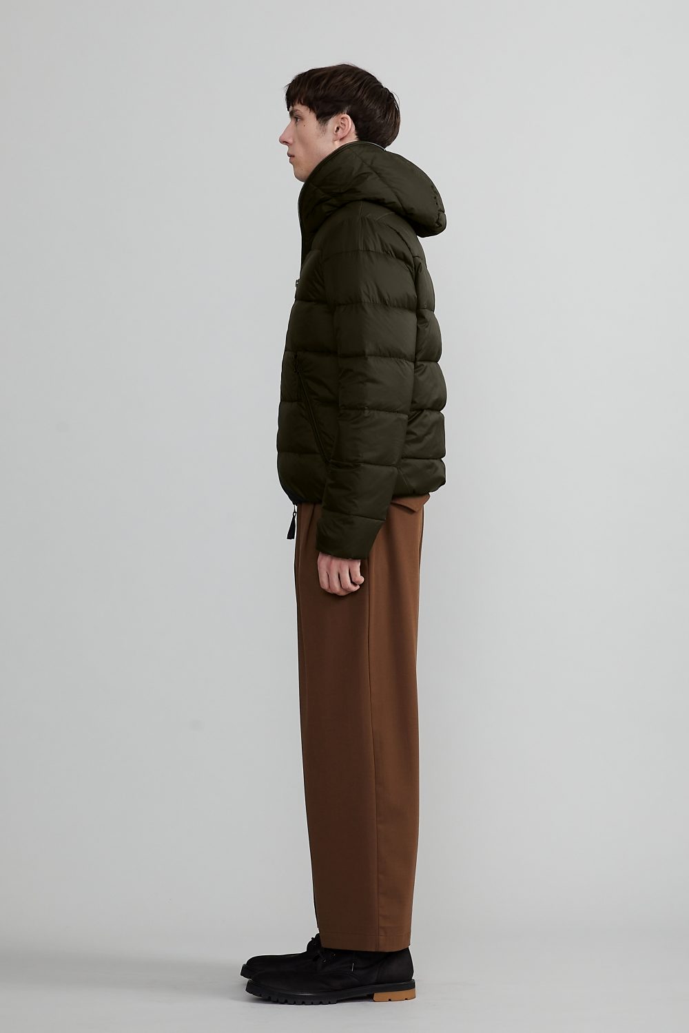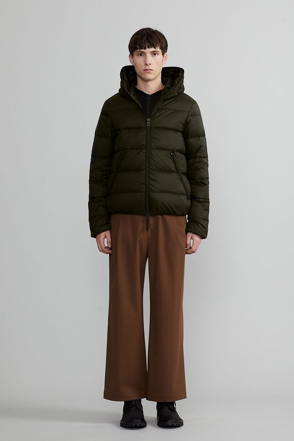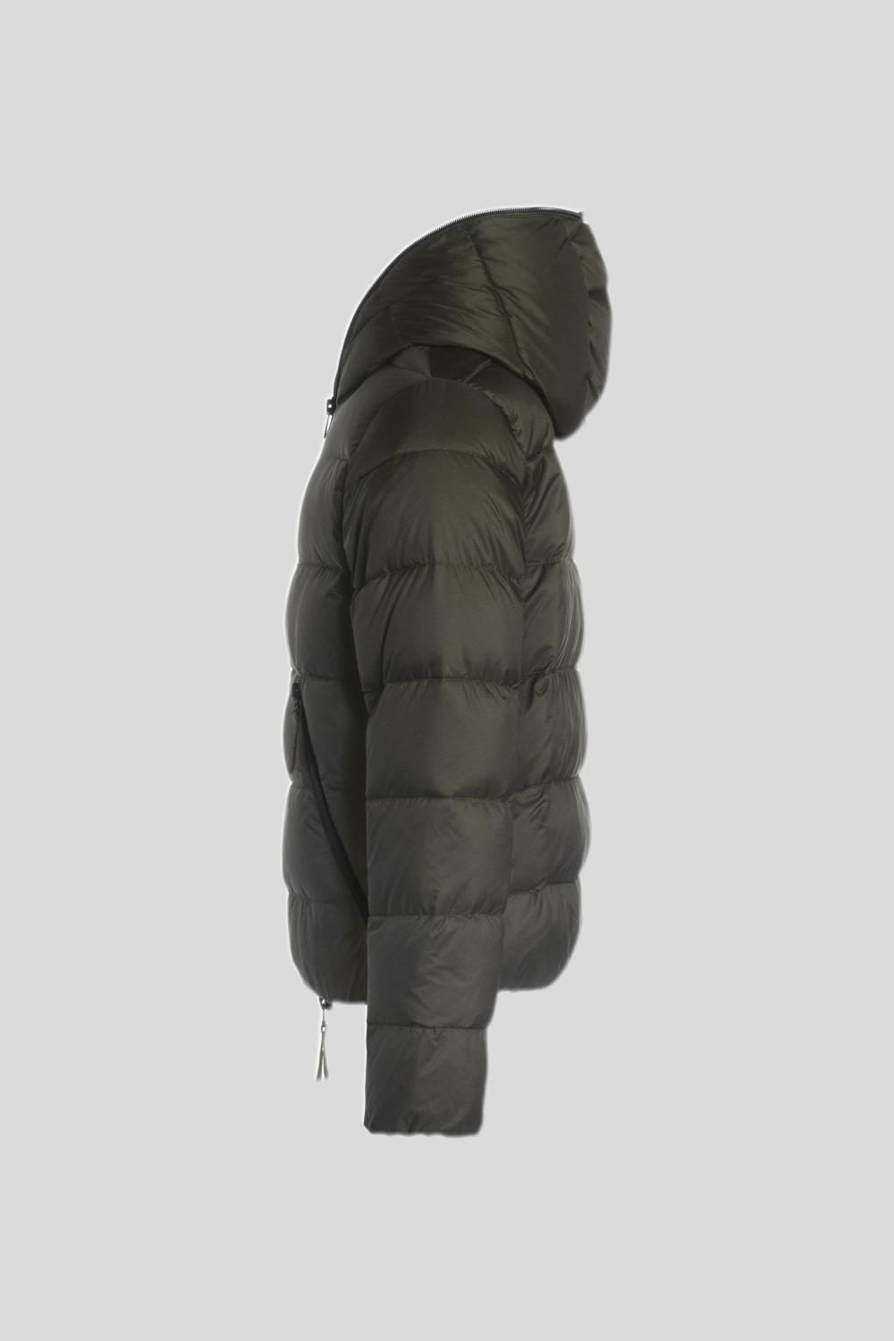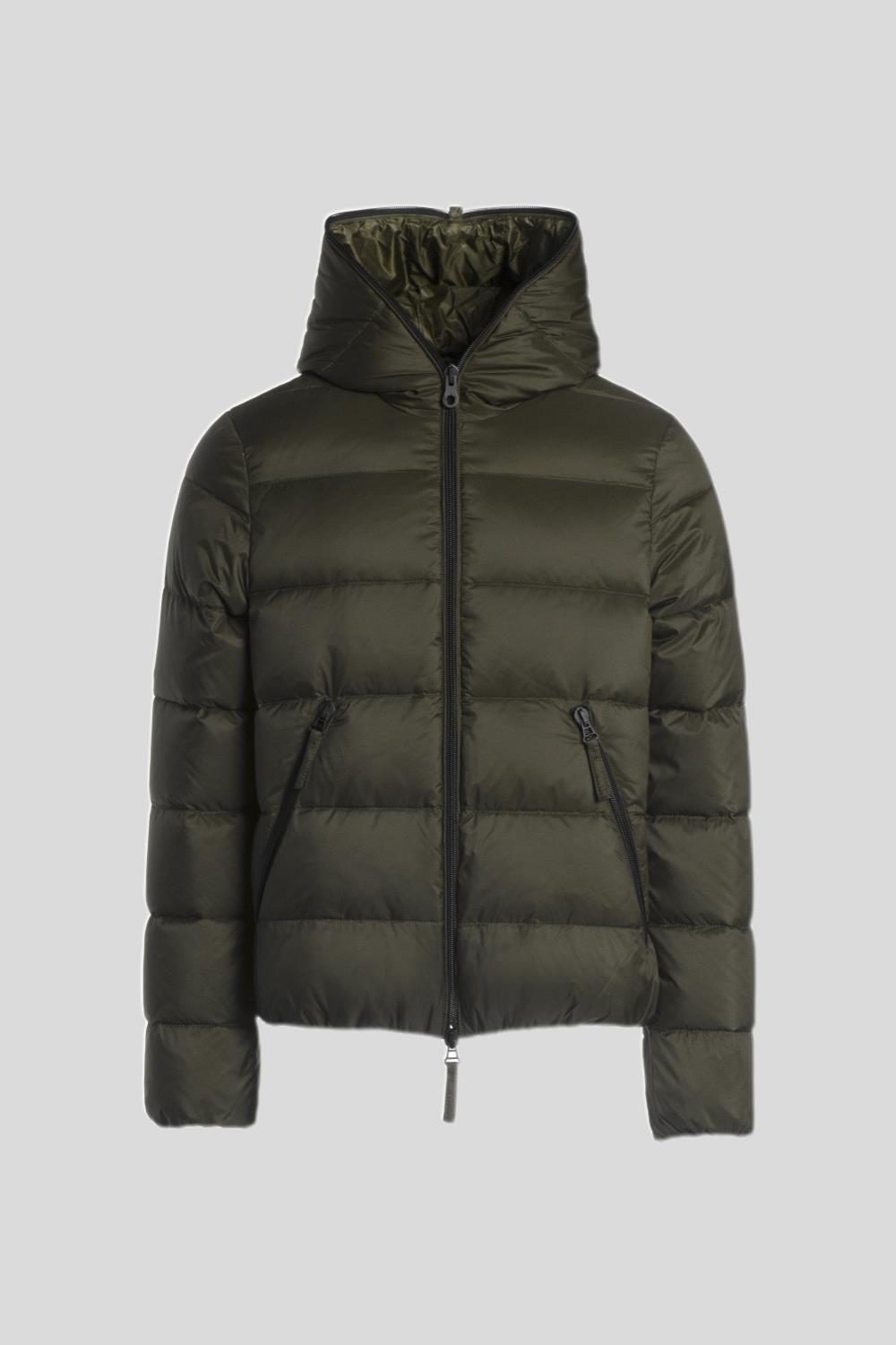 「DIONISIO(ディオニシオ)」の系譜を受け継ぐ、フードトップまで続くダブルファスナー仕様のフルジップアップデザインは、DUVETICAを象徴するブランドアイコンのひとつです。