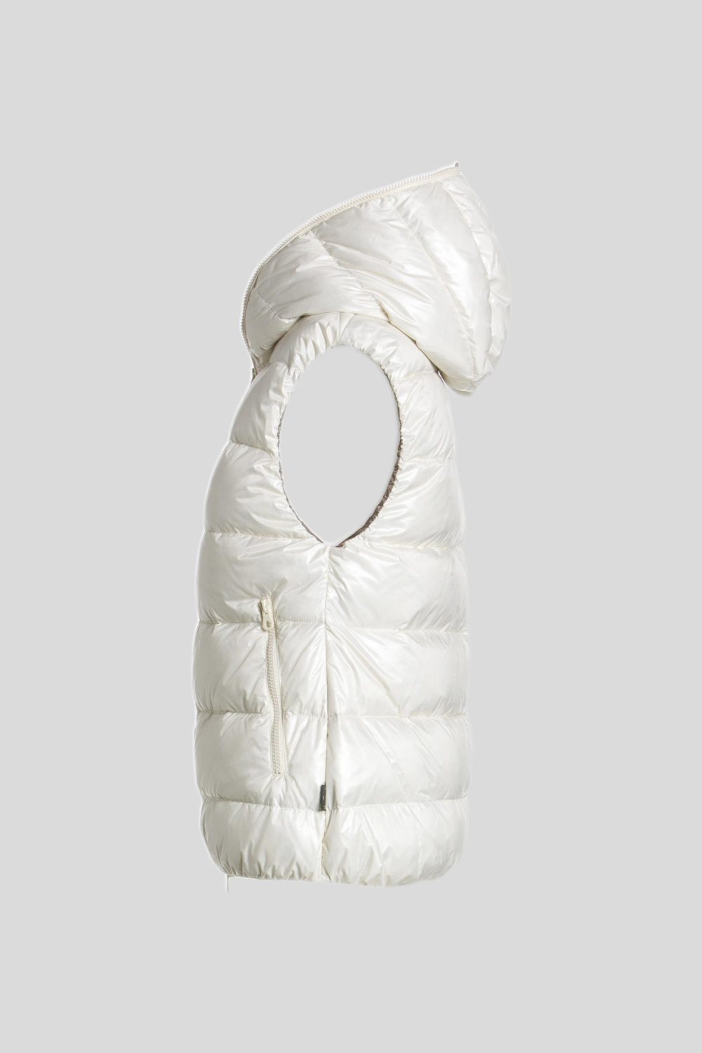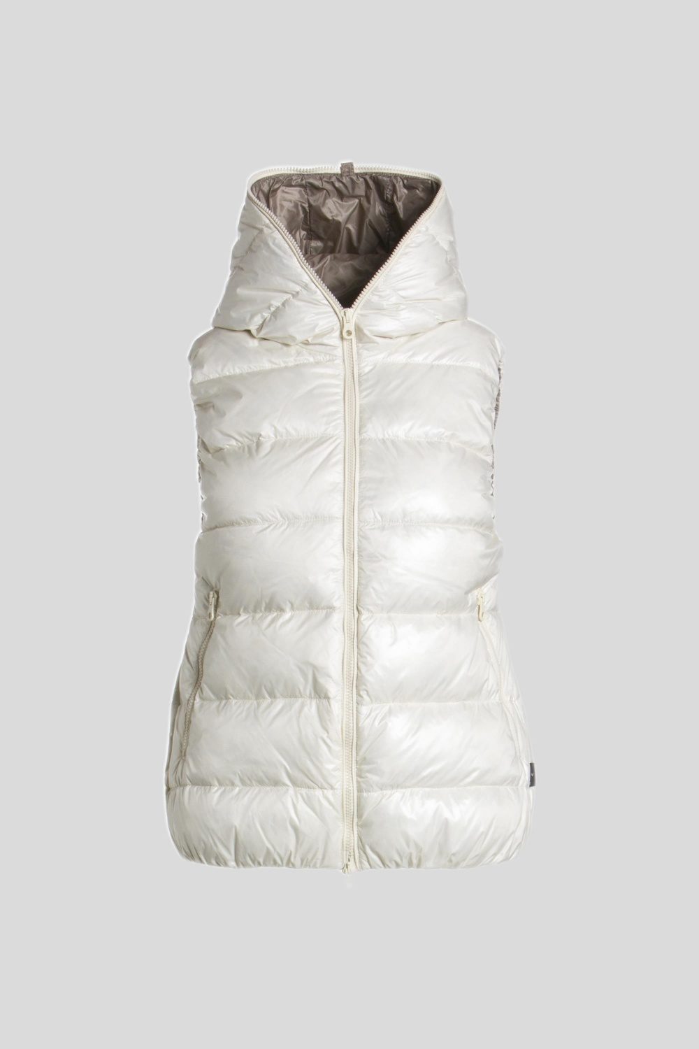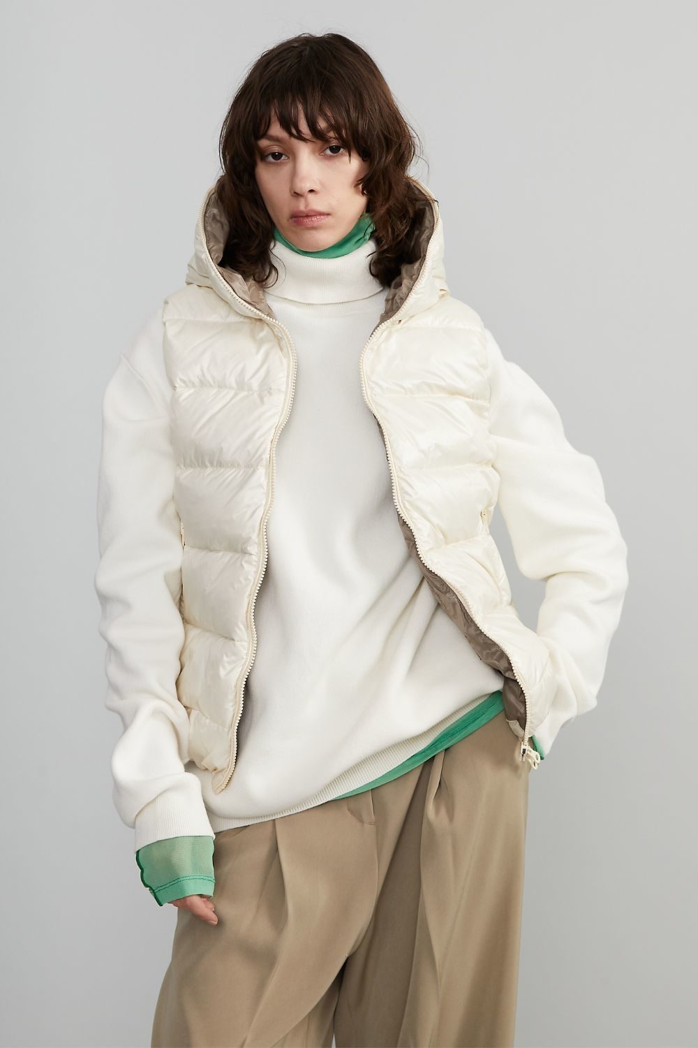 DUVETICAのブランドアイコンでもあるフードトップまで続くダブルファスナーのフルジップデザイン。
