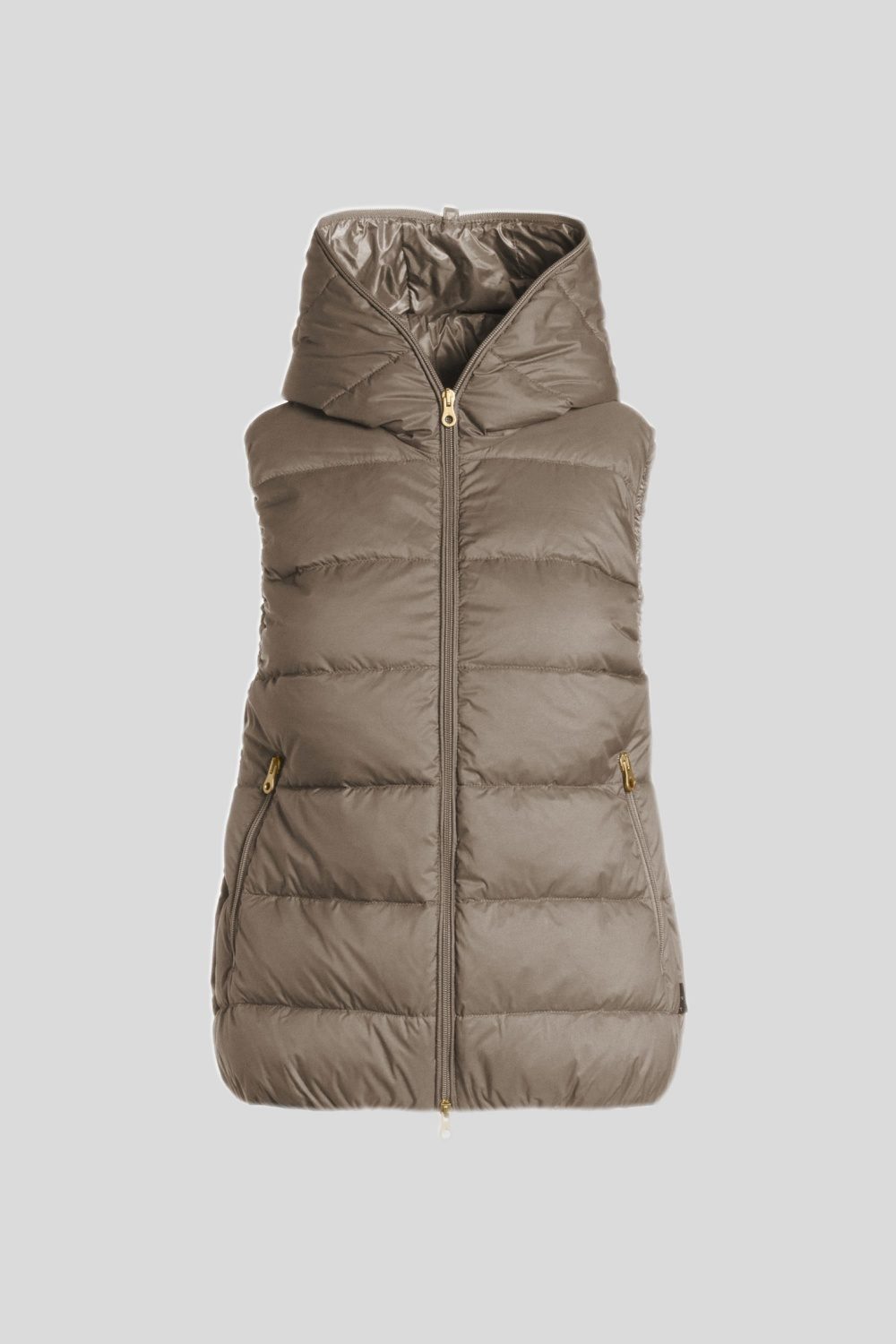 DUVETICAのブランドアイコンでもあるフードトップまで続くダブルファスナーのフルジップデザイン。