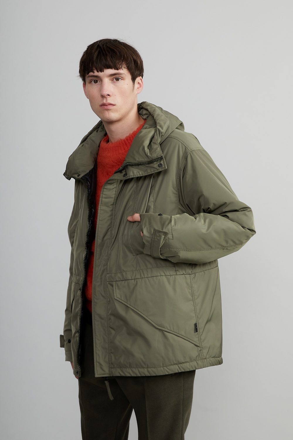 都市型ミリタリーのエッセンスを洗練されたデザインで昇華させた、ショートモッズ風ダウンジャケット「HINTO(ヒント)」。無駄のないクリーンなフォルムに、機能的なディテールを随所に備えたデザインで、タウンユースからアウトドアまで幅広く対応。ライフスタイルに寄り添う汎用性の高い一着です。