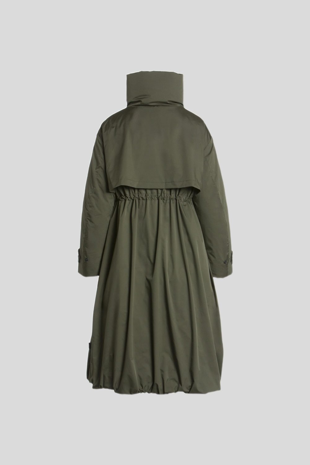 背面のヨーク切り替えとウエストのドローコードにより、ギャザーが効いた立体感のあるシルエットを実現。