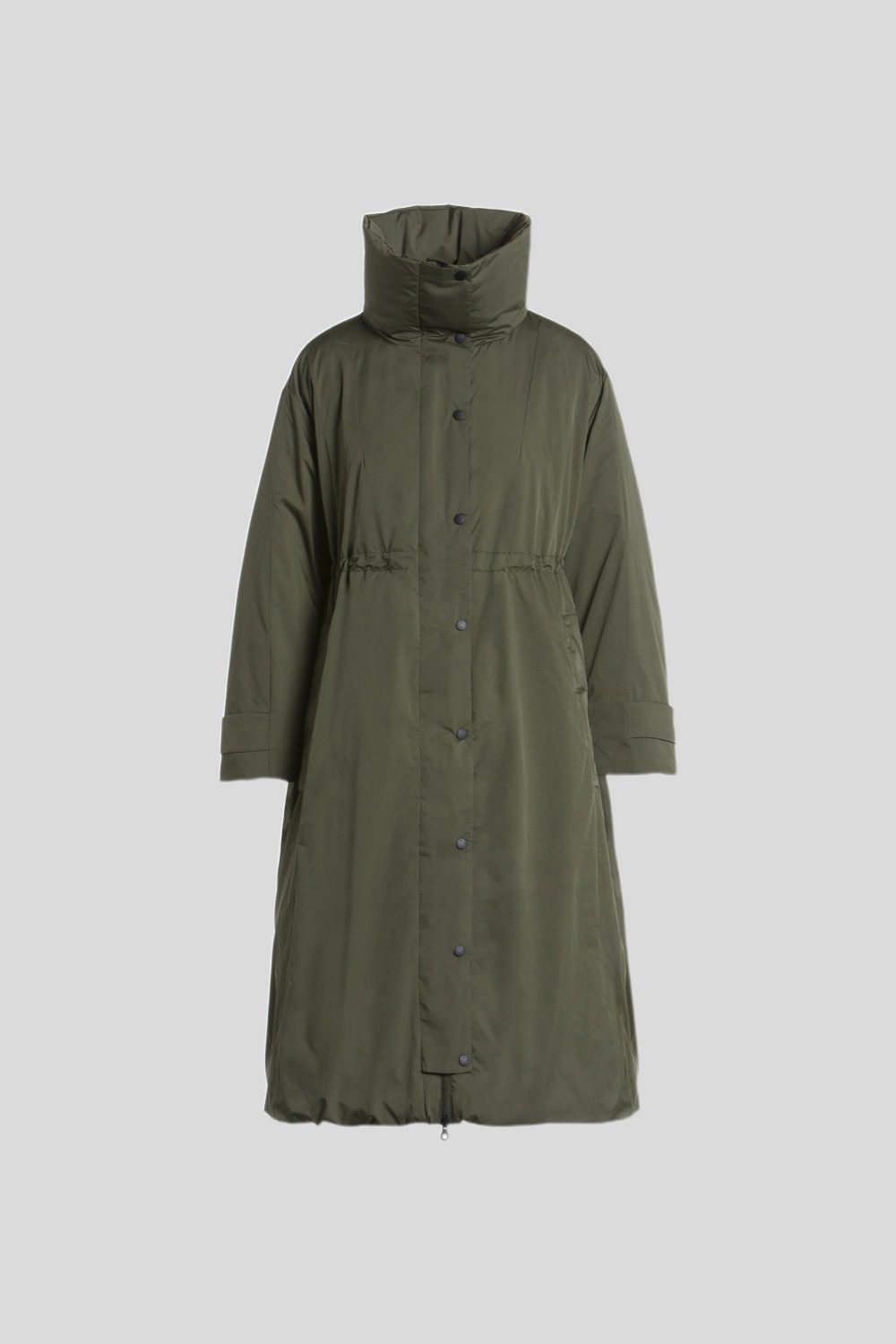 Aラインの裾はドローコードで調整可能。裾を絞ることで2WAY仕様に。バルーンシルエットが楽しめる着回し自在な一着。