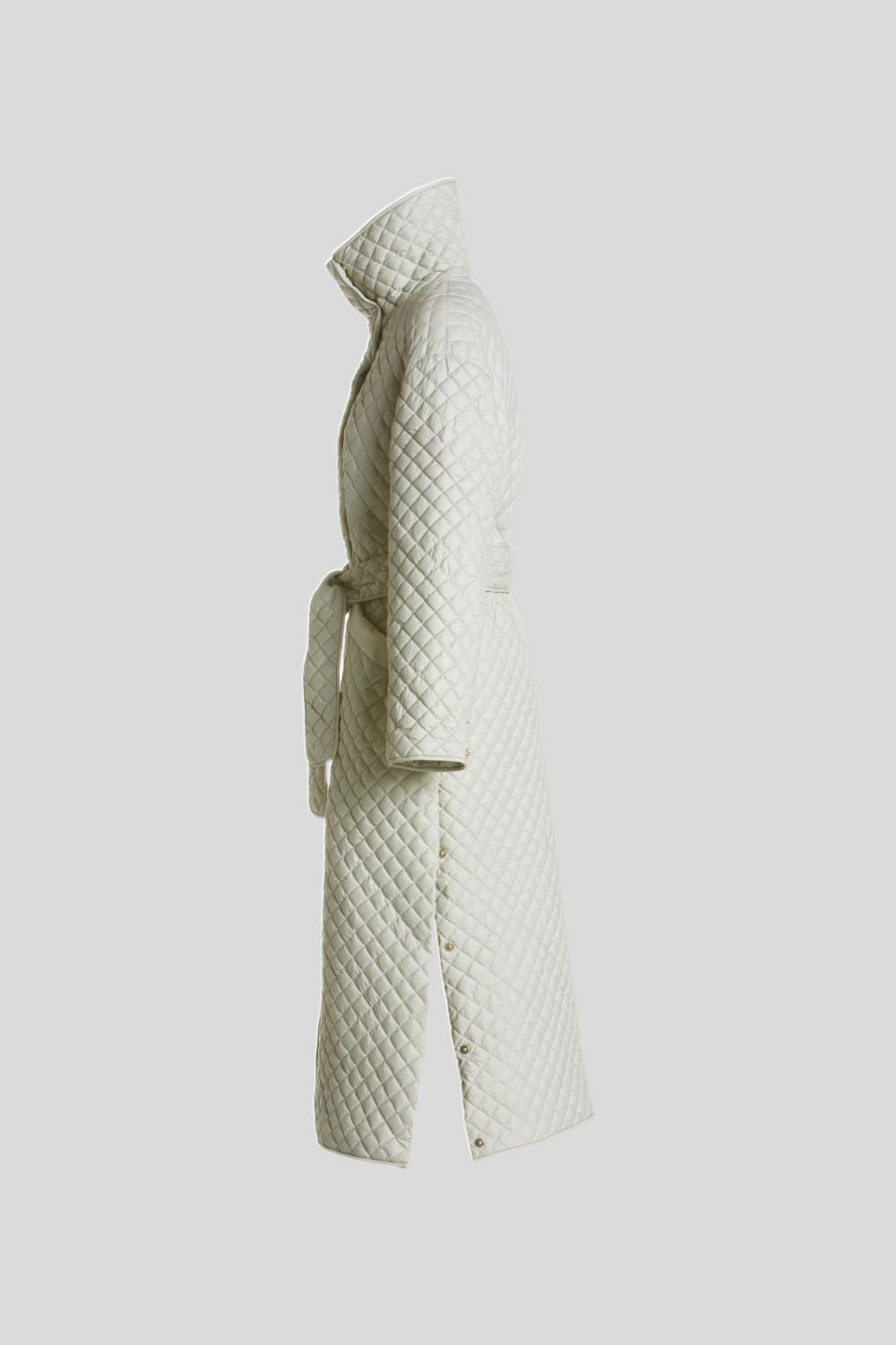 繊細なダイヤキルティングを全体に施すことで、これまでのダウンコートにはなかったドレープ感とエレガンスを実現。美しいシルエットが魅力のラップスタイルダウンコートです。