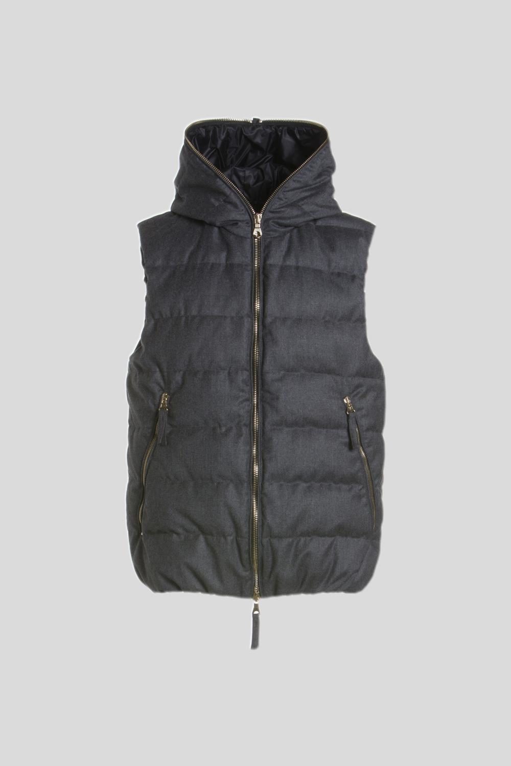 イタリアの人気トラウザーブランド「giabsarchivio(ジャブスアルキヴィオ)」とDUVETICAのコラボレーションによって誕生したダウンベストの「PONZA(ポンツァ)」。ジャブスアルキヴィオが得意とする機能性と洗練された素材使いに、DUVETICAならではの高いダウンウェア技術を融合し、クラシカルなダウンベストの美学を現代的に再構築した1着です。空気を含んだふんわりとしたボリューム感と、イタリアブランドらしい都会的なムードが共存。「快適さと洗練を兼ね備えた、モダンなベストとして、秋冬のリュクス&クラシックなスタイルに上質なアクセントを加えます。