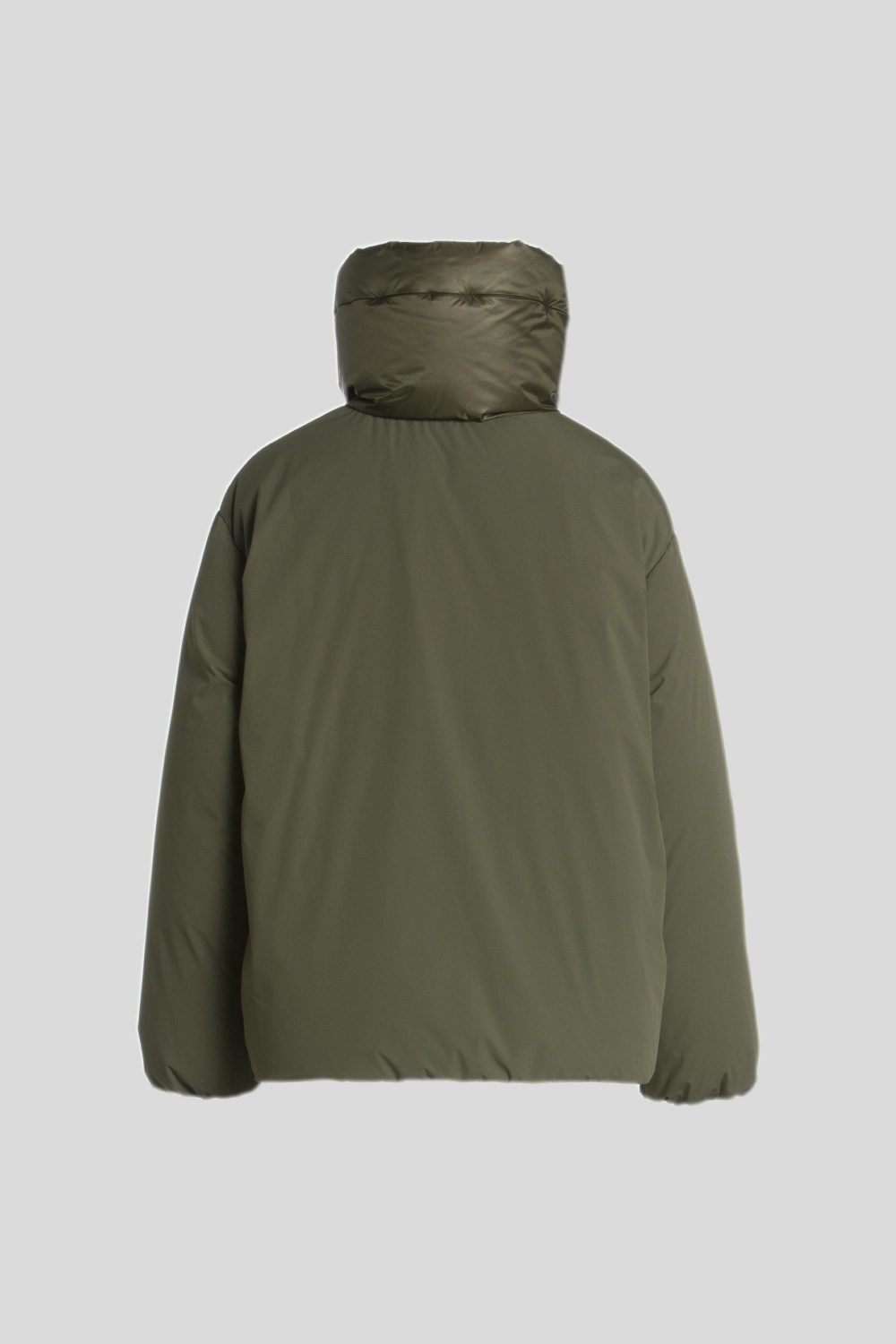 スタンドカラー内に配された2つのファスナーを開けることで、フードが展開するパッカブル仕様に。