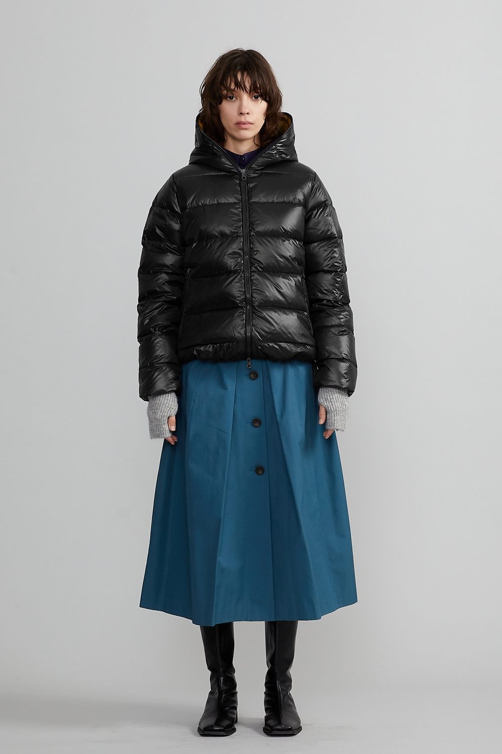 軽快さとモダンな洗練を兼ね備えたショート丈ダウンジャケット「THIALONCINQUE(ティアロンチンクエ)」。美しいシルエットと実用性が融合した一着です。コンパクトな丈感と立体的なフードが都会的なバランスを演出し、ミニマルながらも存在感のあるデザインです。