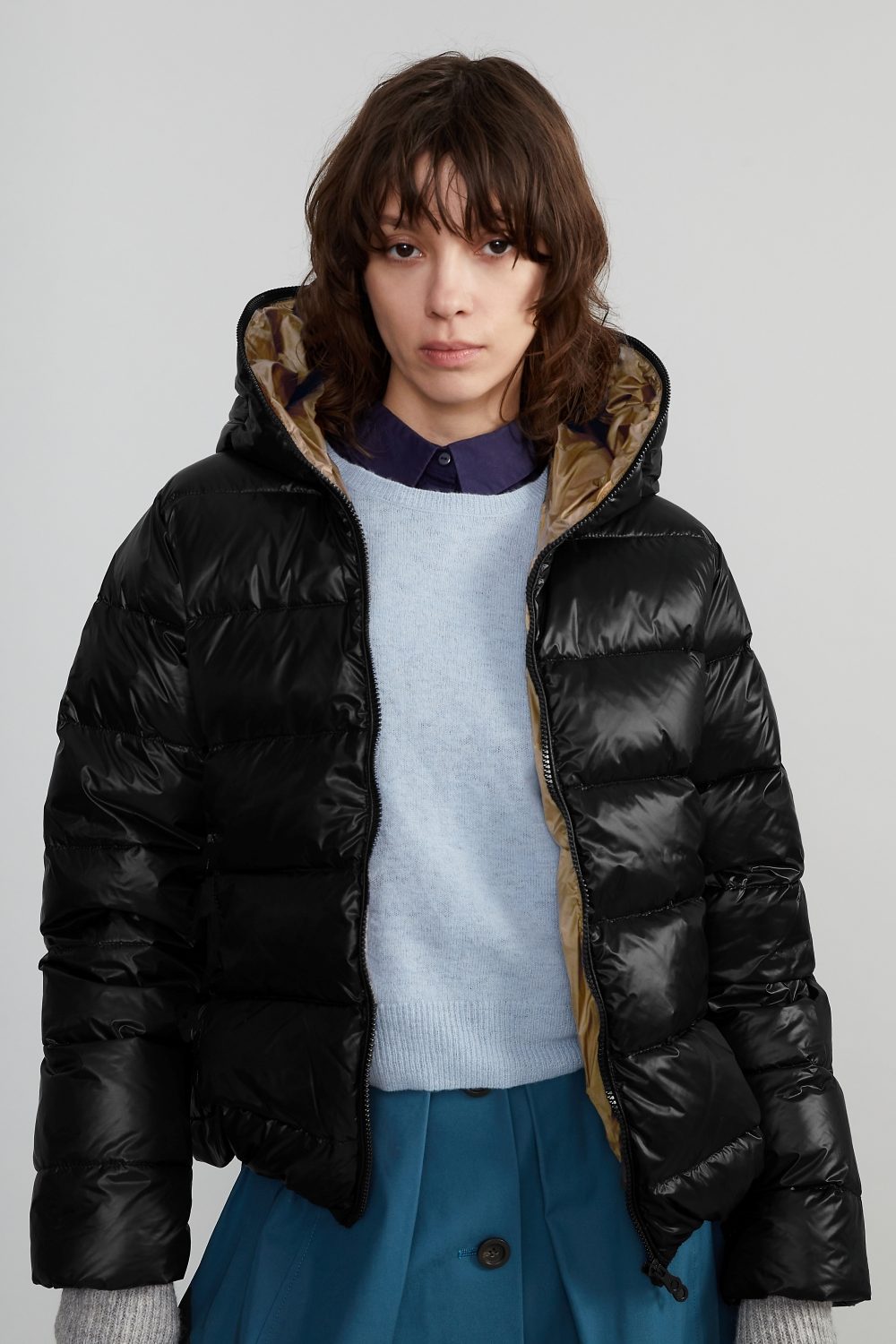 DUVETICAのブランドアイコンでもあるフードトップまで続くダブルファスナーのフルジップデザイン。