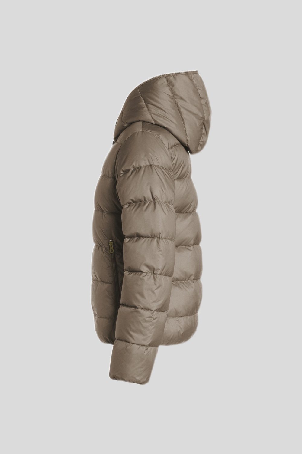 DUVETICAのブランドアイコンでもあるフードトップまで続くダブルファスナーのフルジップデザイン。