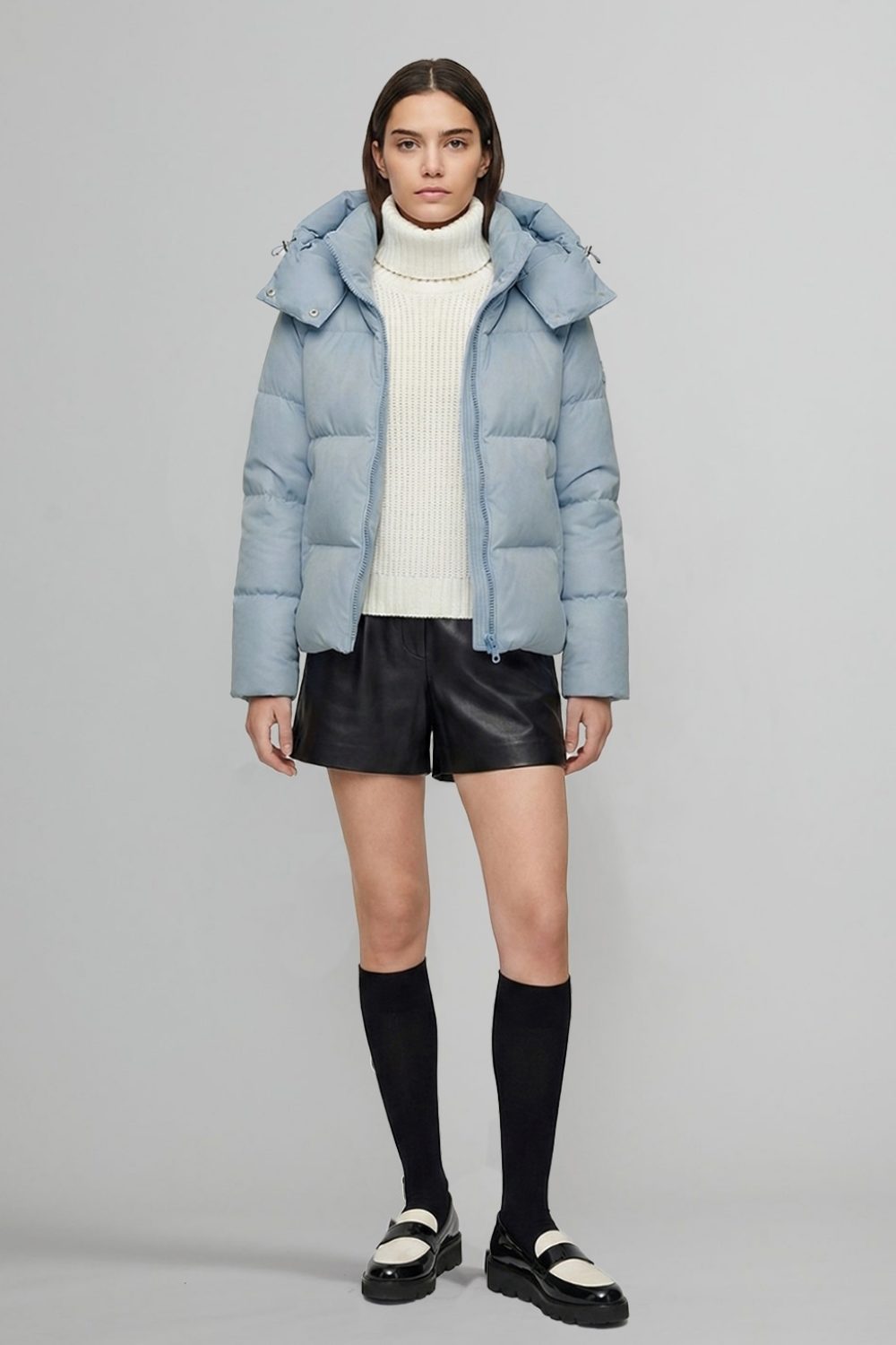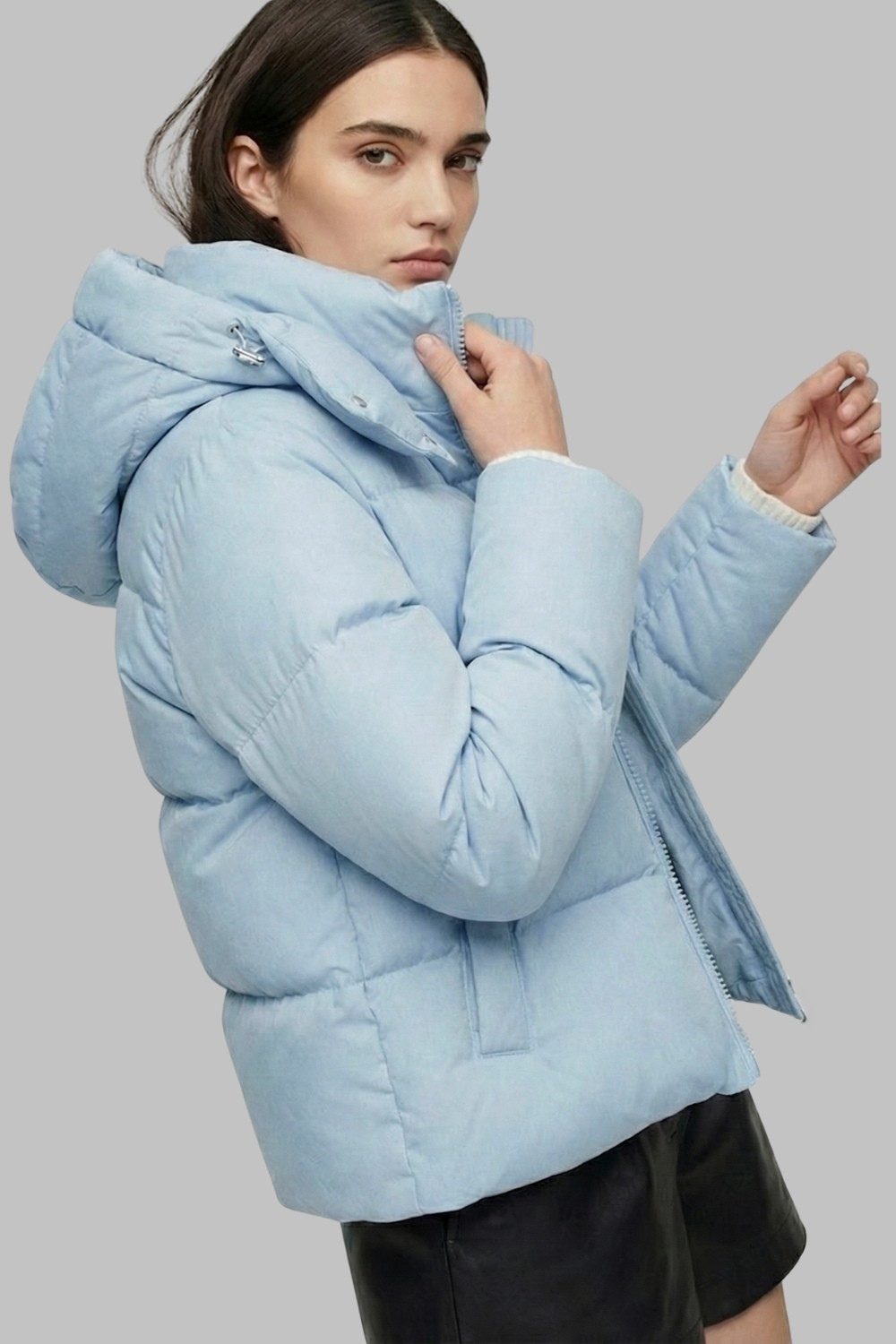 ボリュームのあるダウン分量と直線的なステッチラインにより、モダンなバランスのショートシルエットを実現。