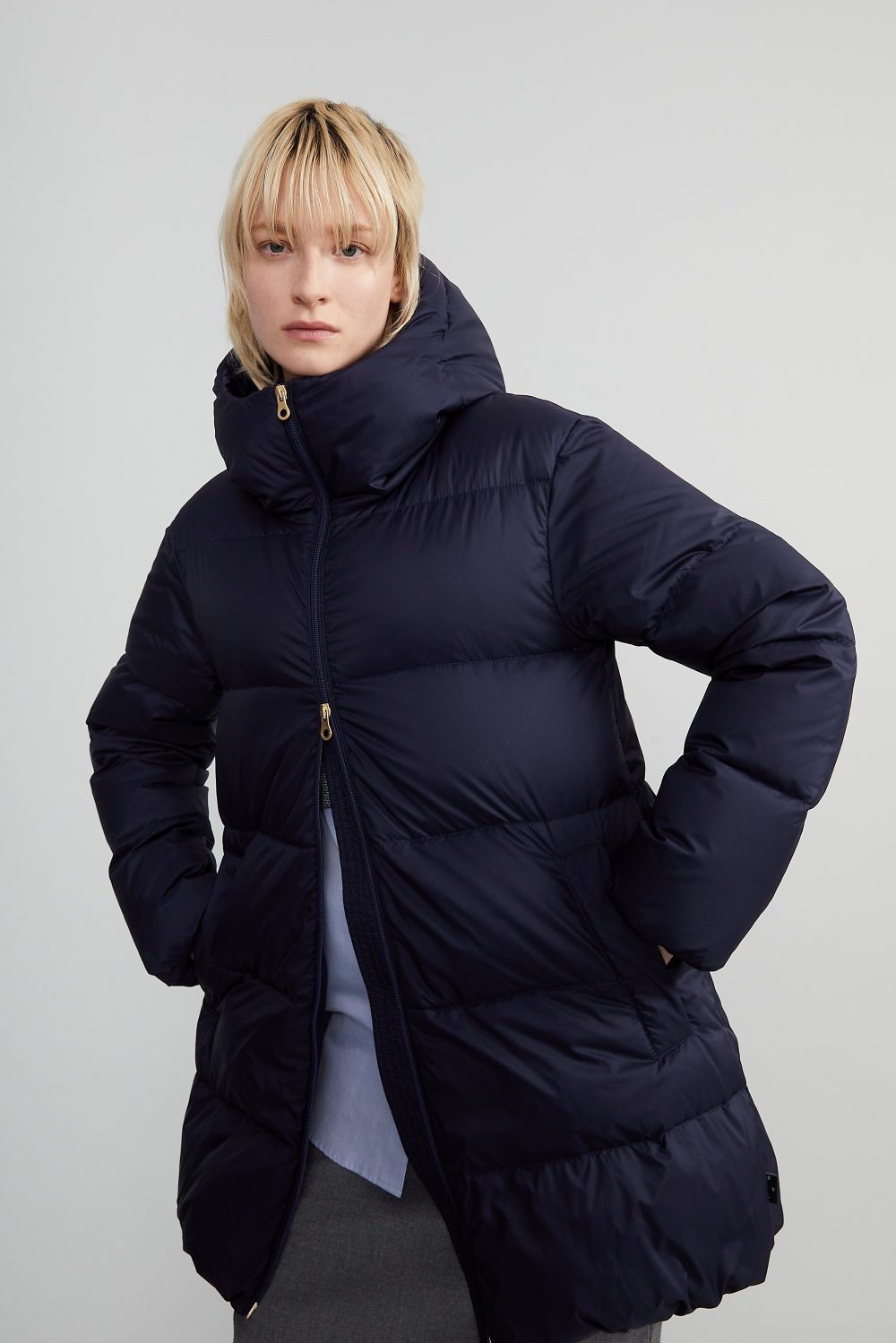 ミニマルなデザインに立体感のあるキルティングが映える、ミドル丈のダウンコート「WICAPI(ウィカピ)」。高めのスタンドネックとラウンドヘムが女性らしい抜け感を演出。ダウンならではの暖かさとすっきりとしたシルエットをデザイン。軽量で耐久性に優れたリップストップナイロン素材を使用し、デイリー使いにも最適な一着です。