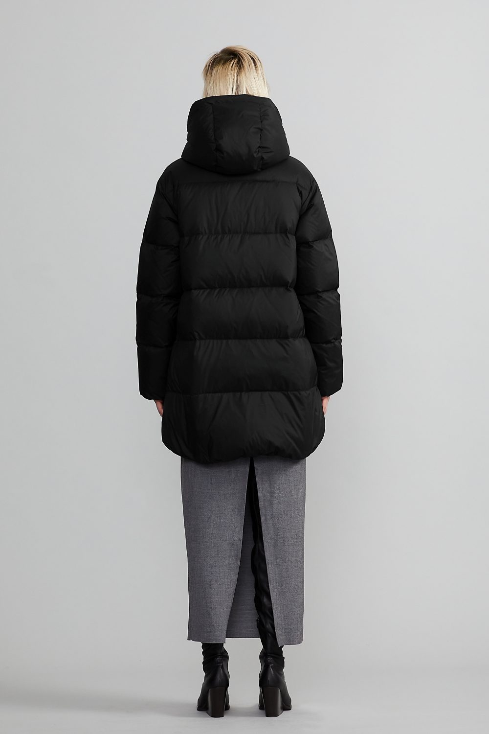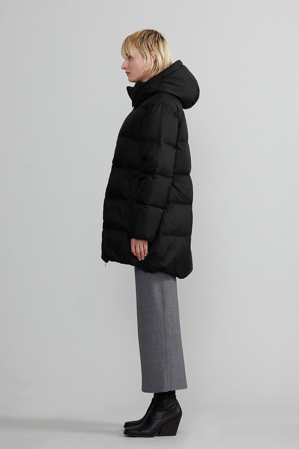 首元から頭部まで優しく包み込む立体的なカッティングで、冷気の侵入をシャットアウト。実用性とモード感を兼備。